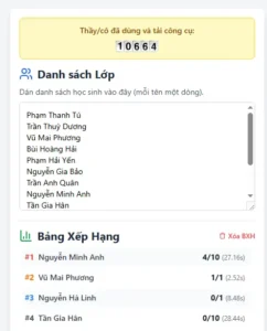 Công cụ vòng quay may mắn kết hợp trắc nghiệm kiến thức và Bảng xếp hạng.